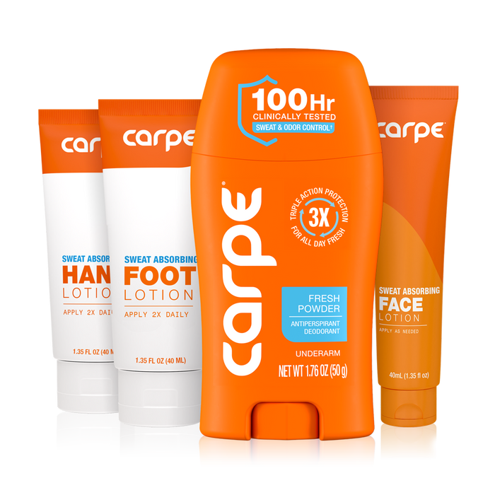 Carpe works by stopping sweat at the source while keeping your skin comfortable and healthy. Its active ingredients gently block sweat glands to reduce perspiration, while absorbent powders soak up moisture and leave you feeling dry. At the same time, odor-fighting ingredients target the bacteria that cause smell, and skin-conditioning ingredients help keep your underarms smooth and irritation-free. Developed by two friends who wanted a real solution for excessive sweating, Carpe has since been tested, refined, and trusted by millions. The result is a dermatologist-recommended antiperspirant that actually works! Carpe helps you stay dry, fresh, and confident all day.